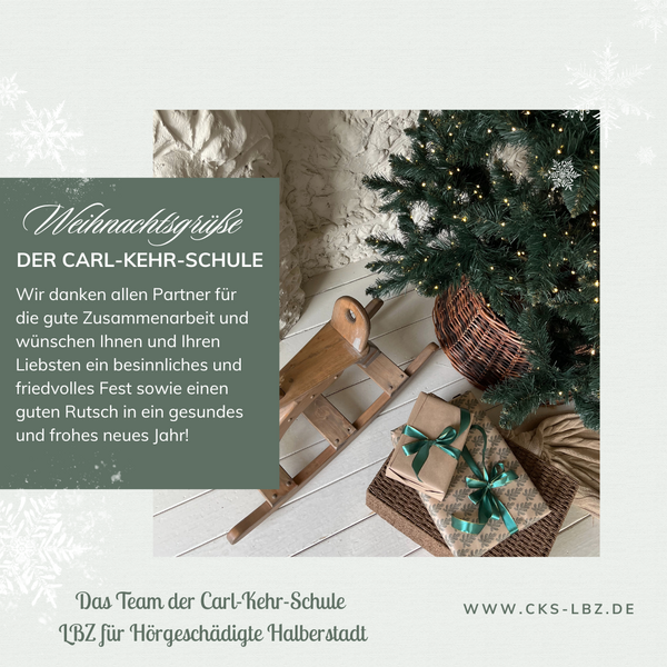Wir wünschen allen Schülern und Schülerinnen, Kollegen und Kolleginnen, sowie allen Mitarbeitern und Freunden der Carl-Kehr-Schule in Halberstadt, eine frohe Weihnachtszeit und ein gesundes und erfolgreiches Jahr 2026. (erstellt mit Canva)