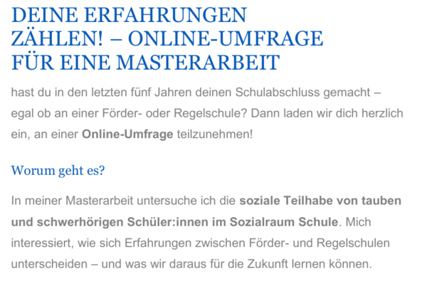 Umfrage zum sozialen Teilhabeempfinden von Menschen mit Förderschwerpunkt Hören